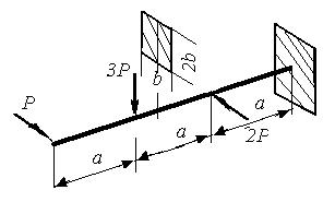 | Определить [P] из расчета на прочность, а = 1м, b = 15см, [σ] = 160 МПа | |||