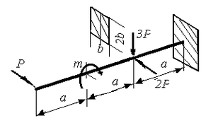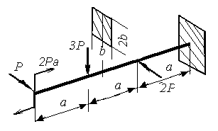 | Определить размеры поперечного сечения из расчета на прочность, P =25 кН, a =1,5 м, m =2Pа, [σ] =190 Мпа. | |||