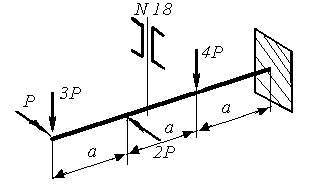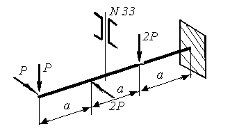 | Определить коэффициент запаса прочности из расчета на прочность. P = 15 кН, а= 1 м, σТ=300 МПа | |||