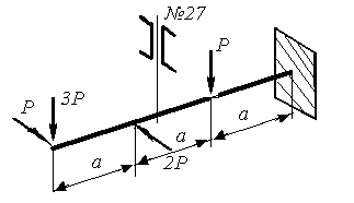 | Определить коэффициент запаса прочности из расчета на прочность. P = 10 кН, а= 1 м, σТ=300 МПа | |||