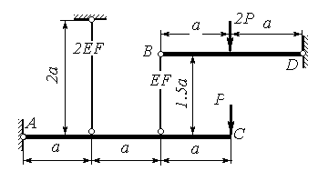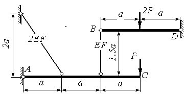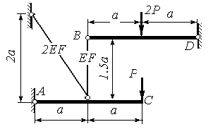 | Определить усилия в стержнях. AC, BD - недеформируемые элементы. | |||