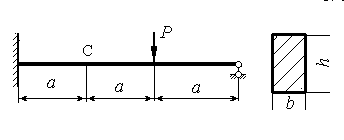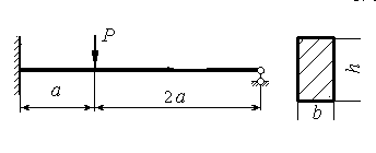 | Определить допускаемый размер [a], P = 40 кН, b = 5 см, h = 2b, [σ] = 160 МПа. | |||