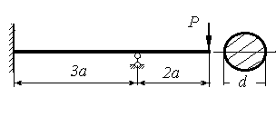 | Определить допускаемое значение силы [Р], а= 1 м, d = 10 см, [σ] = 160 МПа. | |||