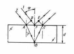 Следует отметить, что при выводе расчетных формул угол падения двух интерферирующих лучей предполагается одинаковым и равным , хотя в действительности эти лучи не параллельны. Это предположение не вносит заметных искажений в результат измерений до тех пор, пока расстояние от экрана до пластинки намного превосходит толщину пластинки.