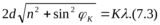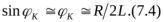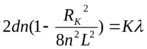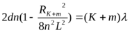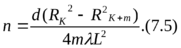 Подставляя (7.4) в (7.3) и разлагая выражение под радикалом в ряд по малому параметру (R^2)/4(n^2)(L^2), после отброса бесконечно малых высоких порядков К-го и (К+m)–го минимумов получаем: