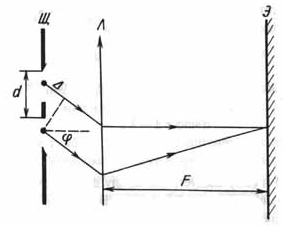 (условие интерференционного максимума), то на экране в соответствующем месте будет расположена светлая полоса. Ее яркость будет в четыре раза выше, чем яркость этого участка картины при наличии одной щели. (При N щелях яркость возрастет в