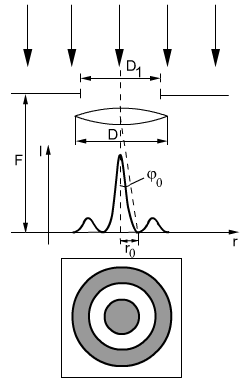 Дифракция Фраунгофера- наблюдается дифракционное изображение точечного источника.