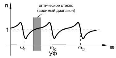 В области аномальной дисперсии наблюдается сильное поглощение света.