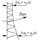 Луч света в неоднородной среде отклоняется в сторону оптически более плотной среды.