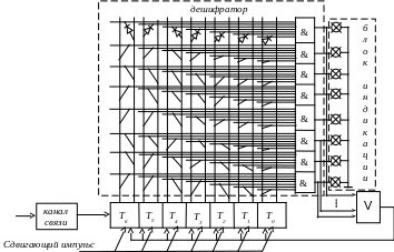 Для этого на все входы схемы "И" этой буквы должны быть поданы сигналы "1" через диоды подключеные к триггерам регистра 3, состояния которых соответствуют кодовой комбинации принятой буквы. Если триггер находится в состоянии "1", то диод подключается к правому или единичному выходу, а если в состоянии "0", то к левому или нулевому выходу. Срабатывание схемы "И" принятой буквы индицирует ее и через схему “ИЛИ” сбрасывает в ноль все разряды регистра 3, кроме первого, в котором снова выставляется "1". После этого схема декодера готова к приему очередной буквы.