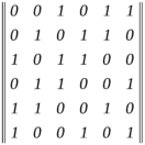 Сдвиг осуществляется справа налево, причем крайний левый символ каждый раз переносится в конец комбинации. Запишем, например, образующую матрицу кода, получающуюся циклическим сдвигом комбинации 001011: