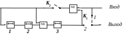 В исходном состоянии ключ К1 находится в положении 1, а ключ К2 замкнут. Информационные символы одновременно поступают как в линию связи, так и в регистр сдвига, где за к тактов образуется остаток. Затем ключ К2 размыкается, ключ К1 переходит в положение 2 и остаток выводится в канал связи.