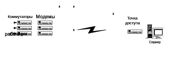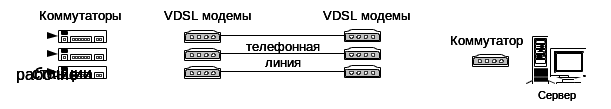 СХЕМА ЛВС МЕЖДУ КОРПУСАМИ НА БАЗЕ МОДЕМОВ: