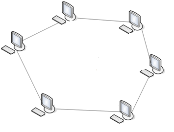 Кольцо — базовая топология компьютерной сети, в которой рабочие станции подключены последовательно друг к другу, образуя замкнутую сеть (рис.2)