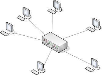Звезда — базовая топология компьютерной сети, в которой все компьютеры сети присоединены к центральному узлу (обычно сетевой концентратор), образуя физический сегмент сети (рис.3).Подобный сегмент сети может функционировать как отдельно, так и в составе сложной сетевой топологии (как правило "дерево").