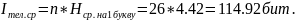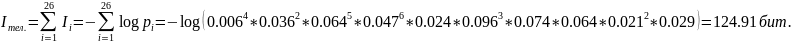 Iтел.ср может быть больше Iтел тогда, когда в телеграмме встречаются чаще чем в языке буквы с вероятностью встречаемости большей чем pср= 0.047 и наоборот, если Iтел.ср < Iтел, то в телеграмме много букв с вероятностью встречаемости меньше, чем 0.047.
