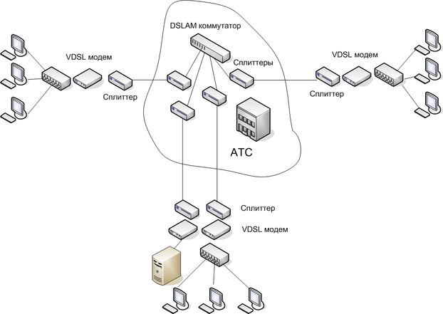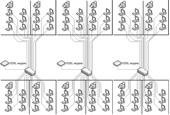Рис. 8 Общее представление сети на базе xDSL модемов