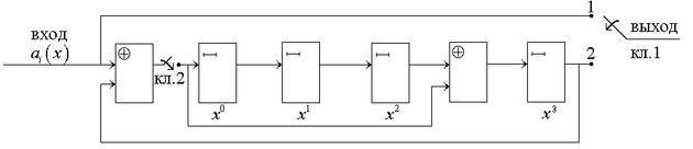 | N | вх | x0 | x1 | x2 | x3 | вых | кл1 | кл2 |