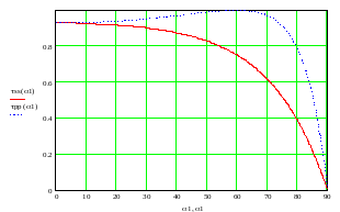Теоретическая зависимость коэффициентов пропускания от угла падения.