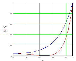 Теоретическая зависимость коэффициентов отражения от угла падения.