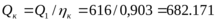 - Полезная тепловая мощность, воспринятая рабочей средой в котле Q1 = 616 МДж/с