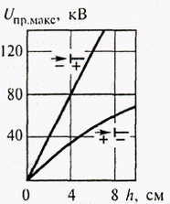 Рис. 5.8. Зависимость про- бивного напряжения U воздуха от расстояния h