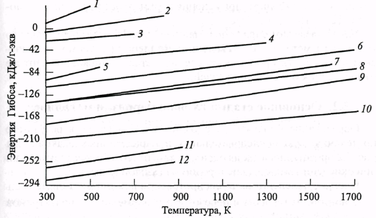 Рис. 3.1. Влияние температуры на ∆G° образования некоторых оксидов металла: