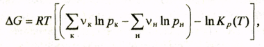 Подстановка (3.21) в (3.19) приводит изобарный потенциал химической реакции в неравновесных условиях, когда к форме