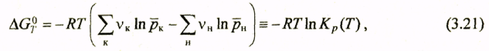 Выражение (3.21) дает важное для термодинамических расчетов соотношение между стандартным изобарным потенциалом ∆G° и константой химического равновесия КР(Т).
