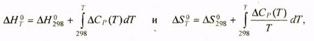 Величины ∆H°298, ∆S°298 и ∆Cp вычисляют на основе таблиц стандартных термодинамических величин