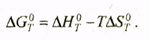 Стандартный изобарный потенциал реакции ∆G°т в этой формуле выражается через тепловой эффект ∆H°т и энтропию ∆°S реакции в стандартных условиях с помощью известного соотношения (3.35):