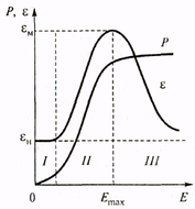 На участке III диэлектрическая проницаемость снижается, так как увеличивается Е:
