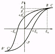 При циклическом изменении электрического поля зависимость поляризованности от напряженности поля примет вид петли гистерезиса (см. рис. 7.4), аналогичной для ферромагнетиков. Из предельной петли диэлектрического гистерезиса можно определить остаточную поляризованность Ро (при Е = 0), коэрцитивную силу Ес и другие характеристики. Величины Рн и Еп являются соответственно значениями поляризованностью и напряженностью поля, указывающими начало участка насыщения (отрезок ВС) предельной петли диэлектрического гистерезиса. Экстраполяция отрезка ВС до пересечения с осью Р дает величину, приближенно равную спонтанной поляризации Рс. По значению коэрцитивной силы Ес сегнетоэлектрические материалы подразделяют на сегнетомягкие (Ес < 0,1 МВ/м) и сегнетотвердые (Ес < 1 МВ/м).