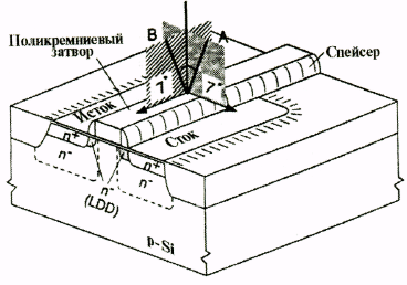 Указанные проблемы стимулировали развитие методов термического нитрирования подзатворного окисла; одновременно это способствовало повышению его стойкости к воздействию электрических стрессов. Однако при термическом нитрировании максимум концентрации азота располагается вблизи границы Si—SiO2, что ограничивает проникновение бора в область канала, но не предотвращает накопление бора в объеме окисла, приводя к снижению его надежности. Решение этих проблем достигается при использовании низкотемпературного плазмостимулированного процесса нитрирования подзатворного окисла, в котором максимум концентрации азота располагается на внешней поверхности окисла. Дополнительным существенным достоинством этого метода является сохранение величины подвижности носителей, свойственной МОПТ с чистым подзатворным окислом.