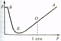 Зависимость электрической прочности газов от давления. Зависимость Епр газов от давления Р, представленная на рис. 5.4, показывает, что с увеличением давления (выше атмосферного) Епр возрастает (участок ОА), а с уменьшением — снижается (участок ОБ). В области высокого вакуума (участок БВ) Епр снова возрастает и далее не изменяется (участок ВГ).