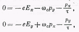 Чтобы рассчитать коэффициент Холла и магнетосопротивление, определим вначале плотности тока jx и jy в случае, когда имеется электрическое поле с произвольными компонентами Ех и Еу, а также магнитное поле Н, направленное вдоль оси z. На каждый электрон действует (не зависящая от пространственных координат) сила f = —е (Е + v X Н/с), поэтому уравнение (1.12) для импульса в расчете на один электрон приобретает вид 2)