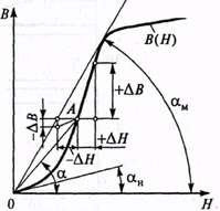 При использовании магнитных материалов одновременно в постоянном Но и переменном Н_ магнитных полях их магнитные свойства характеризуют величиной дифференциальной магнитной проницаемости μдиф:
