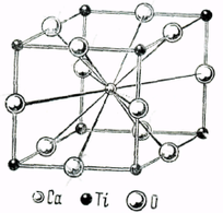 Элементарная ячейка СаТЮз примитивная, кубическая. Федоровская группа РтЗт. Начало координат обычно выбирают в центре тяжести атомов титана, которые в этом случае занимают все вершины элементарного куба, в центре которого расположен атом кальция. Атомы кислорода распределяются по серединам всех ребер, создавая вокруг атома кальция координационный многогранник в форме кубооктаэд-ра (к. ч. 12).