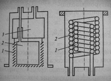 Криоконденсационные насосы заливного типа имеют конструктивную схему (рис. 2.3). В полость 2 заливается низкотемпературный криоагент (жидкий гелий или водород), а в полость 3 – высокотемпературный криоагент (жидкий азот). Экраны 1 защищают поверхность сосуда с низкотемпературным криоагентом от излучения стенок насоса, не препятствуя проникновению откачиваемого газа к охлажденной поверхности. Очень часто в криоконденсационных наосах используется адсорбционный способ поглощения неконденсирующихся газов, для чего поверхность сосуда с низкотемпературным криоагентом покрывается адсорбентом в виде пористой оксидной пленки (или в процессе работы насоса на ней осаждается пористый слой хорошо конденсируемых газов)