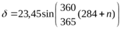 δ —склонение Солнца: