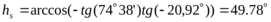 Наклон коллектора s = + 15° = 64°38’