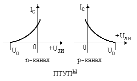 | | Выходные характеристики ПТУП и МОП транзисторов качественно похожи. Имеют область крутых и область пологих характеристик.Необходимо быть внимательным к полярностям напряжений UСИ и UЗИ ! |