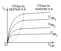 | В области пологих характеристик IC = IСm (1- UЗИ / U0 )2. U0 - напряжение отсечки, IC T-2. |