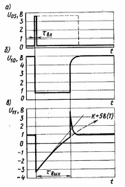Мультивибратор АГ1 нельзя перезапустить, пока не истекло время Т. Запущенный мультивибратор нечувствителен ко входным сигналам 03, 04 и 05. Входная схема с триггером Шмитта обеспечивает надежный запуск (по входу 05) при медленно нарастающем напряжении запуска (например, даже при скорости нарастания фронта запуска 1 В/с). Помехоустойчивость по входам— 1,2, по питанию— 1,5 В.
