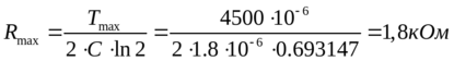 Рассмотрим ограничения , накладываемые на внешние R, C компоненты. Rmin снизу ограничивается максимально допустимым током базы транзистора VT1. В технических условиях указано Rmin=1.4кОм, что соответствует току базы транзистора VT1 равному приблизительно 2.7мА. Rmax сверху ограничивается требованием обеспечения насыщенного режима транзистора VT1. В технических условиях указано, что Rmax=30кОм. Емкость конденсатора С должна быть меньше или равна 1000мкФ, причём допускается применение электролитических конденсаторов.