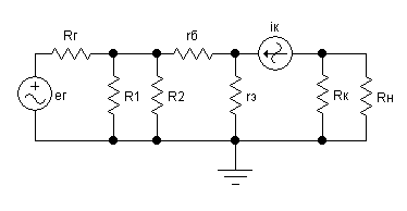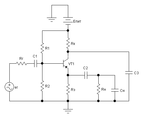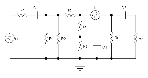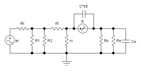 Эквивалентная малосигнальная схема замещения каскада для низких частот: