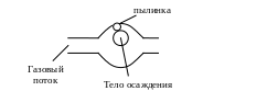 Газовый поток огибает тело осаждения, а пылинка продолжает двигатся прямолинейно и сталкивается с телом осаждения.