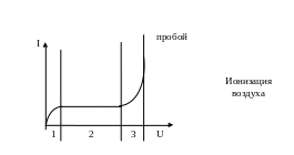 Участок 3: ионы приобретают энергию достаточную для ударной ионизации. Напряжение, при котором возникает кронирующий разряд(участок 3):
