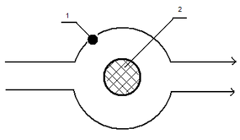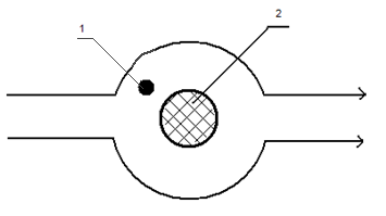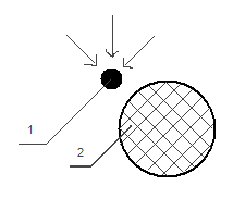 2. Осаждение за счет диффузии (броуновского движения) соударения с телом осаждения (на рисунке3: 1-пылинка, 2-тело осаждения).