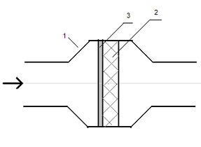 Применяют тканевые, волокнистые и другие фильтры, имеющие следующую конструкцию (на рисунке 1: 1-корпус, 2-фильтрующий элемент, 3-слой осажденной пыли):